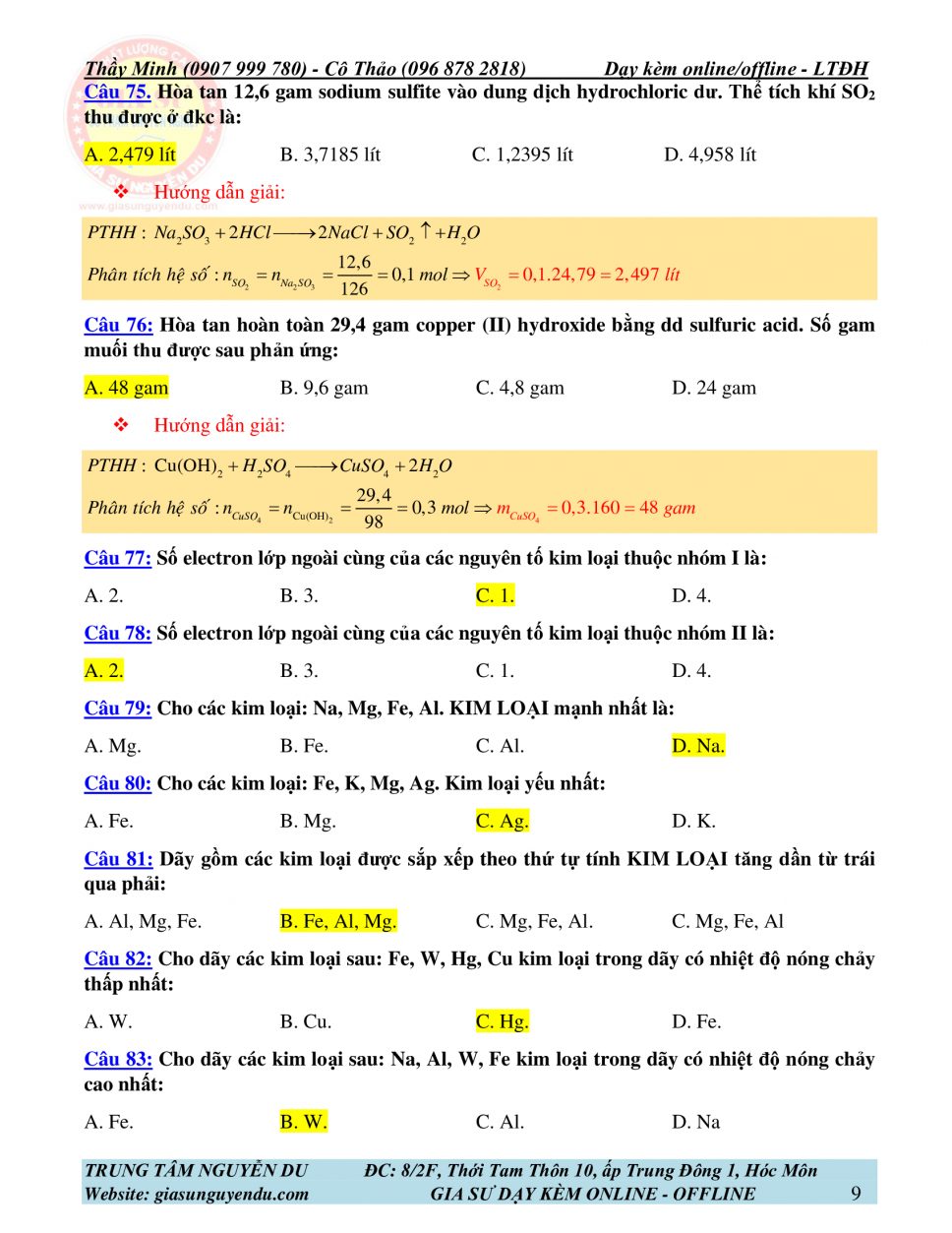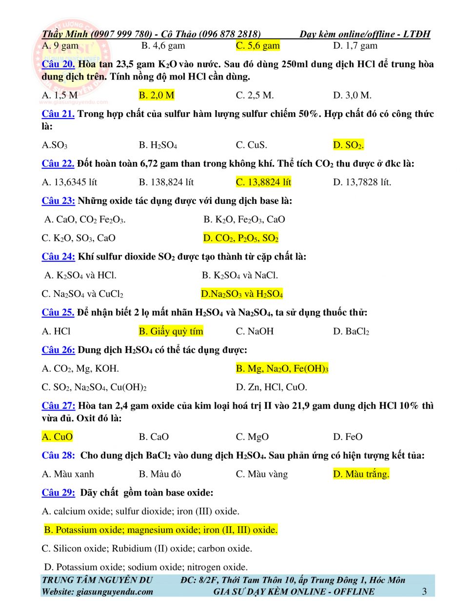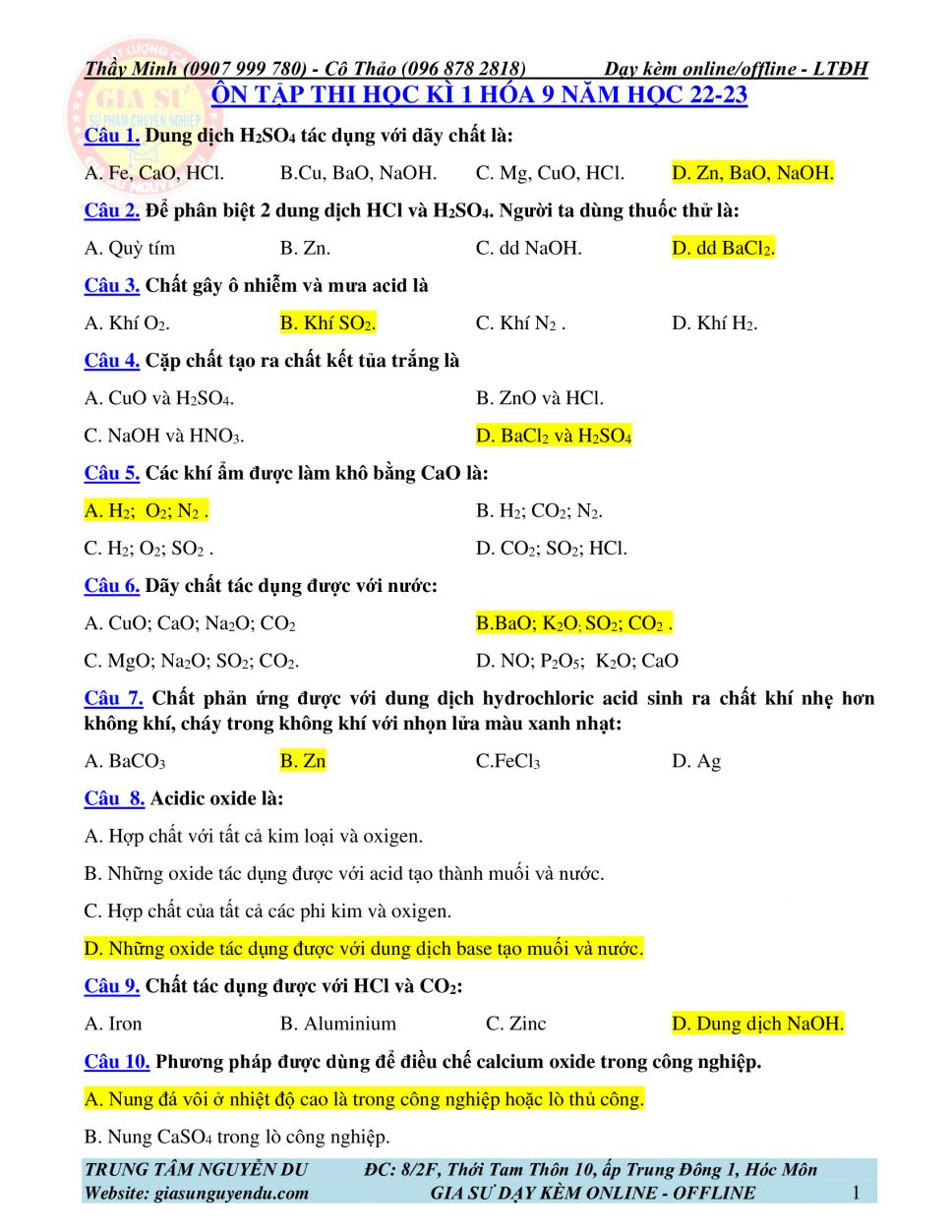 ĐỀ CƯƠNG ÔN THI HỌC KÌ I HÓA 9 TỔNG HỢP BÀI TẬP TRẮC NGHIỆM VÀ TỰ LUẬN HÓA 9 CÓ ĐÁP ÁN.