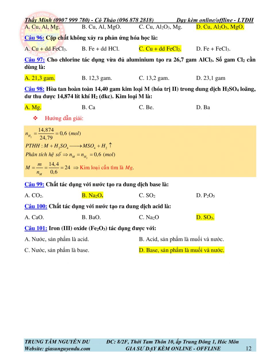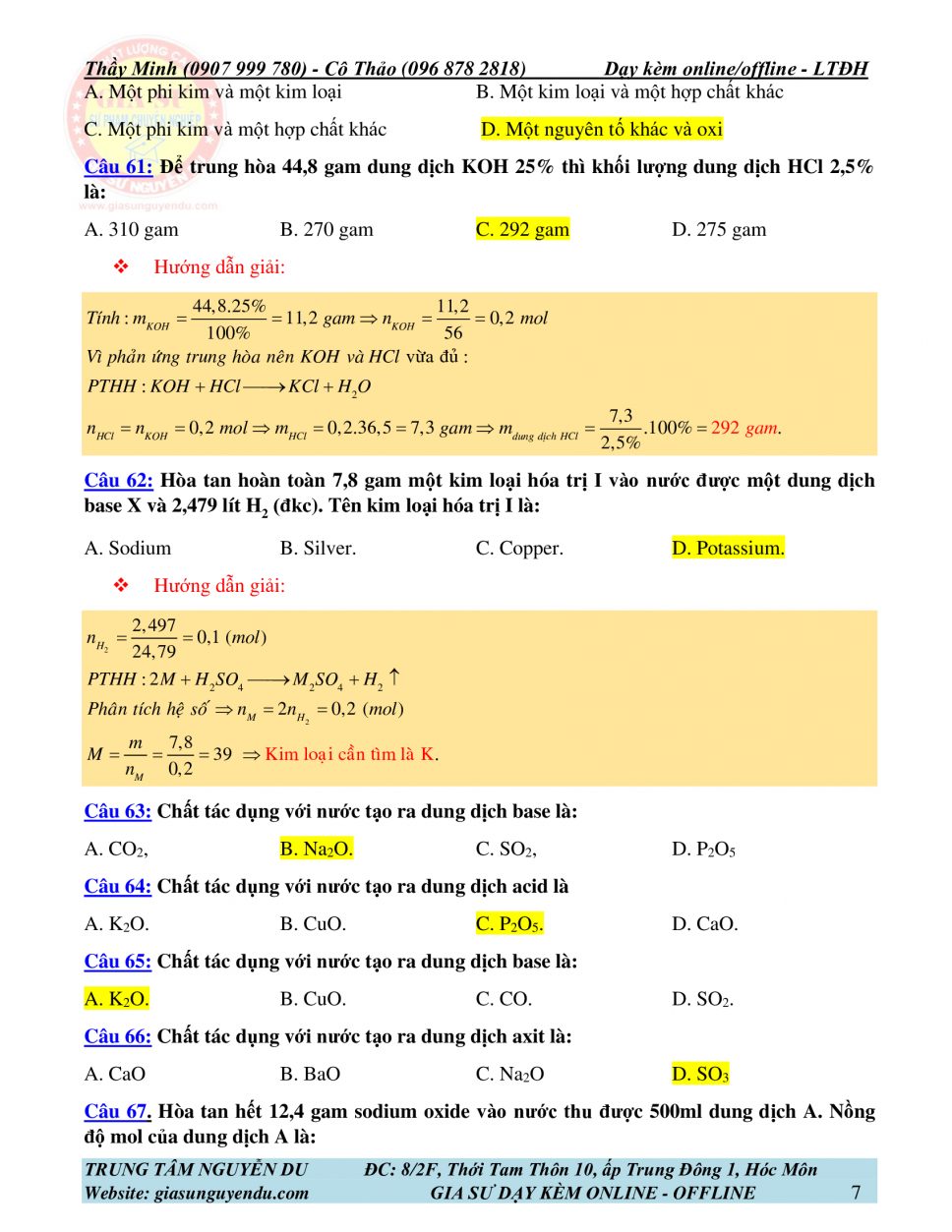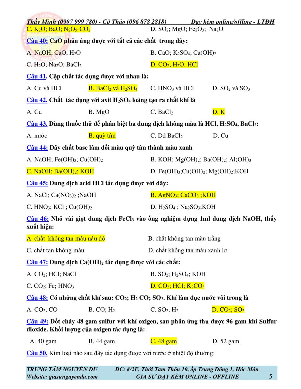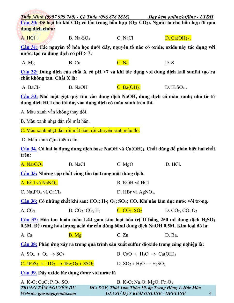 ĐỀ CƯƠNG ÔN THI HỌC KÌ I HÓA 9 TỔNG HỢP BÀI TẬP TRẮC NGHIỆM VÀ TỰ LUẬN HÓA 9 CÓ ĐÁP ÁN.