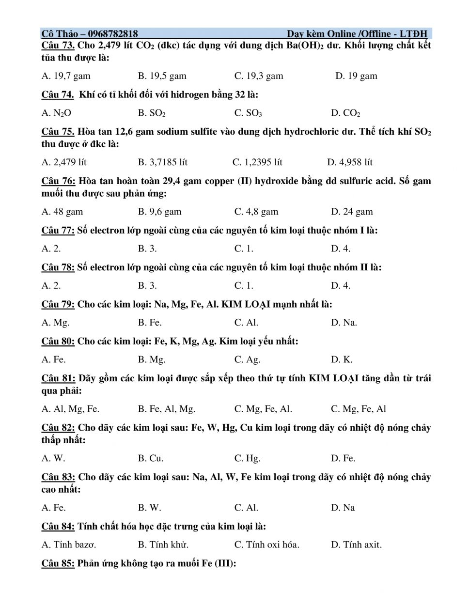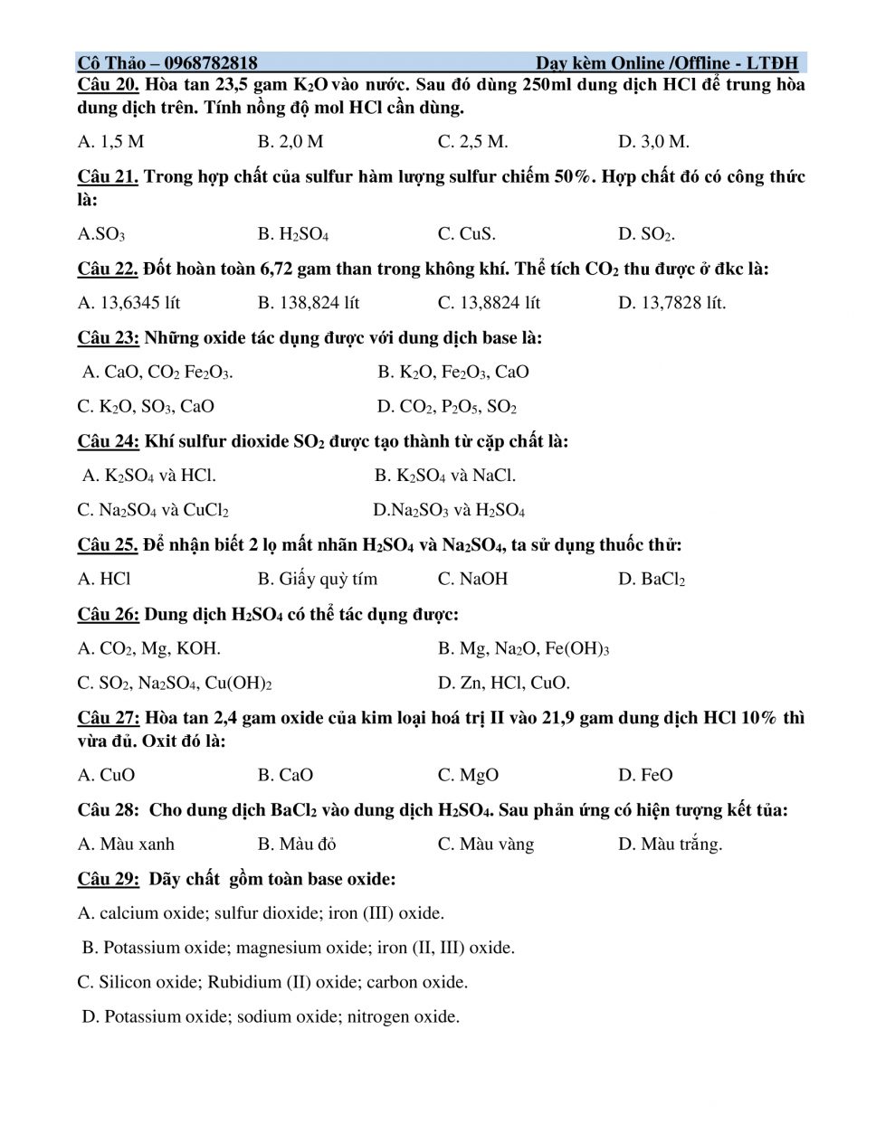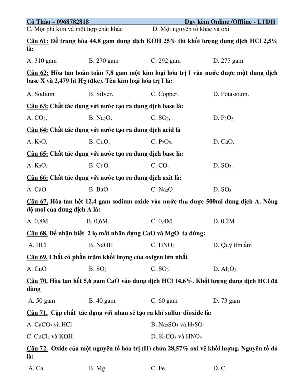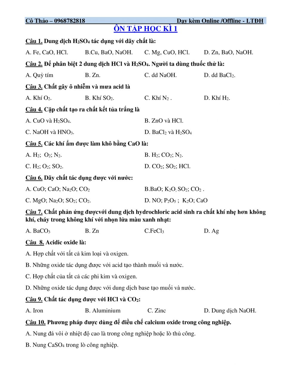 ĐỀ CƯƠNG ÔN THI HỌC KÌ I HÓA 9 TỔNG HỢP BÀI TẬP TRẮC NGHIỆM VÀ TỰ LUẬN HÓA 9 CÓ ĐÁP ÁN.