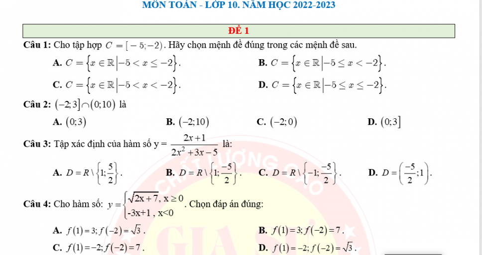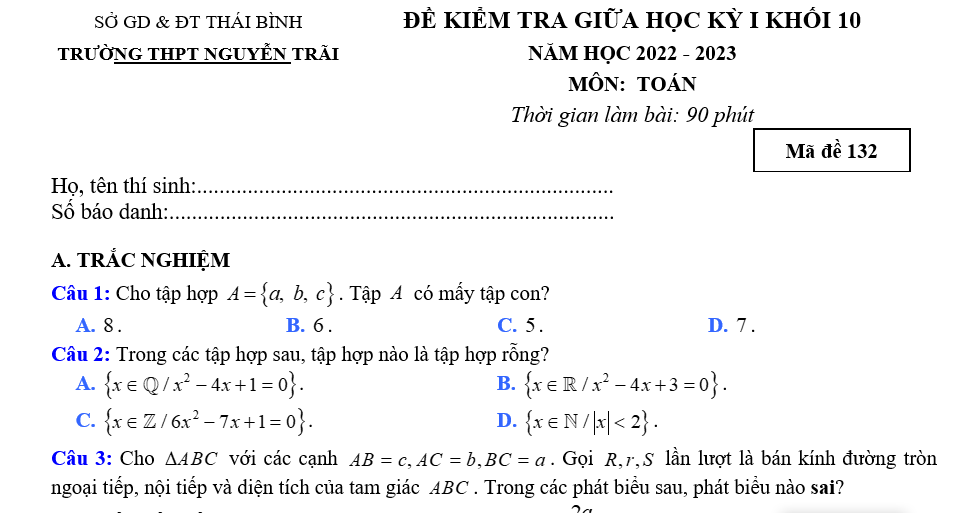 ĐỀ CƯƠNG ÔN TOÁN 10 THI HỌC KỲ 1 NĂM HỌC 22-23