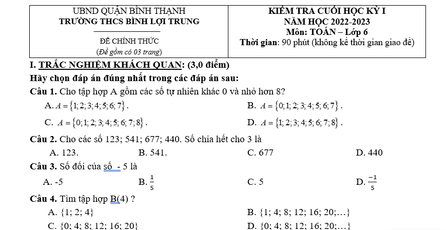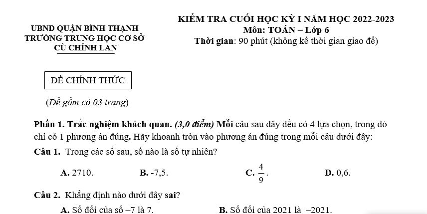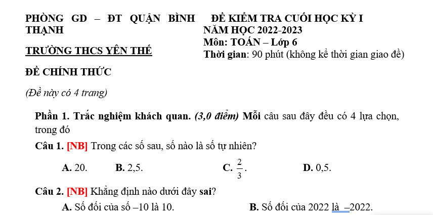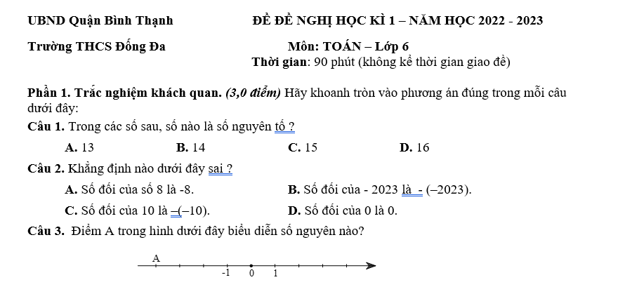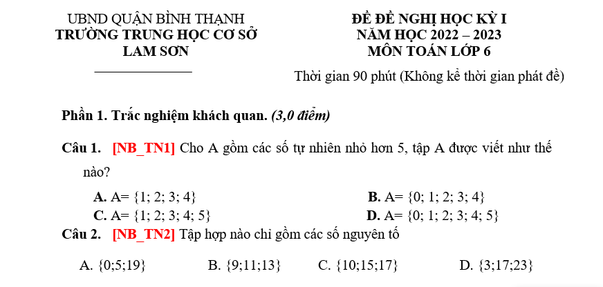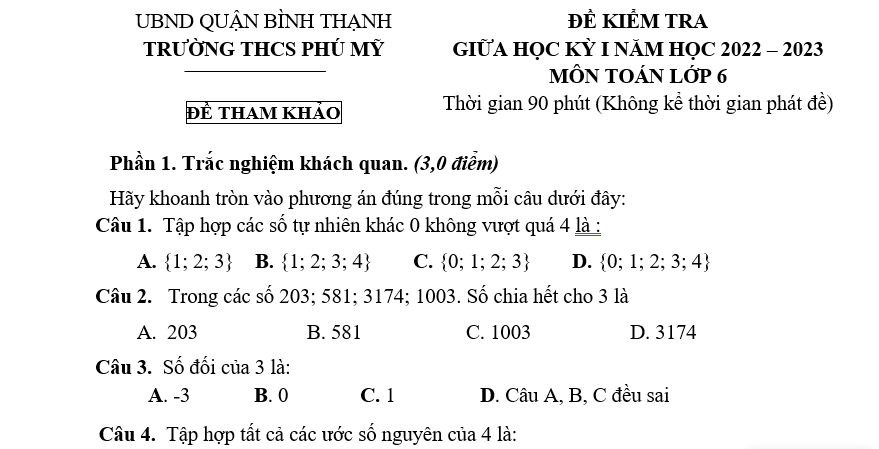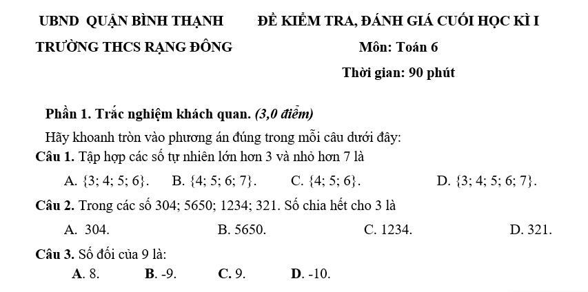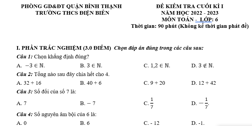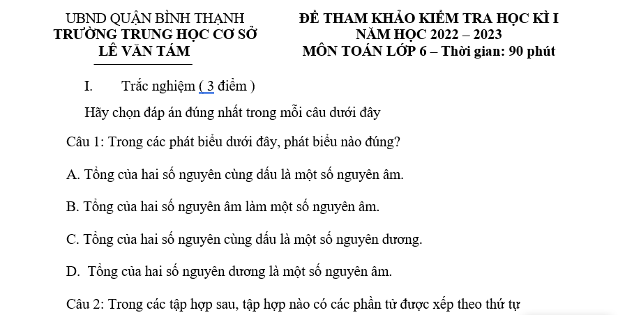 ĐỀ CƯƠNG ÔN TOÁN 6 Q.BÌNH THẠNH THI HỌC KỲ 1 NĂM HỌC 22-23