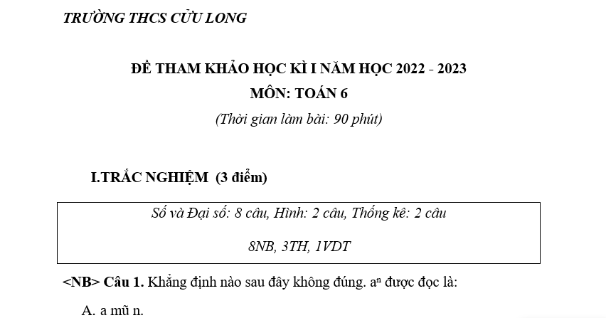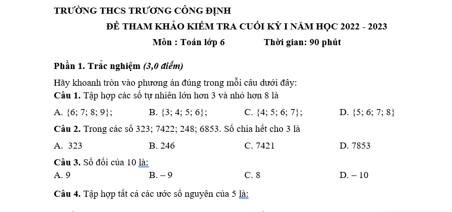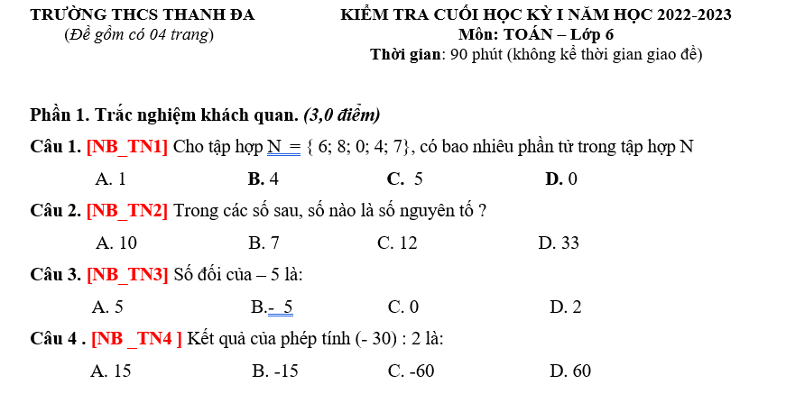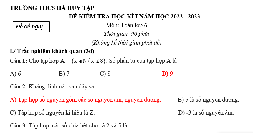 ĐỀ CƯƠNG ÔN THI HỌC KÌ I TOÁN 6 TỔNG HỢP BÀI TẬP TRẮC NGHIỆM VÀ TỰ LUẬN TOÁN 6 CÓ ĐÁP ÁN.