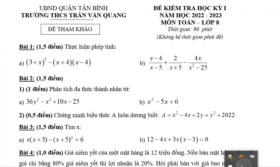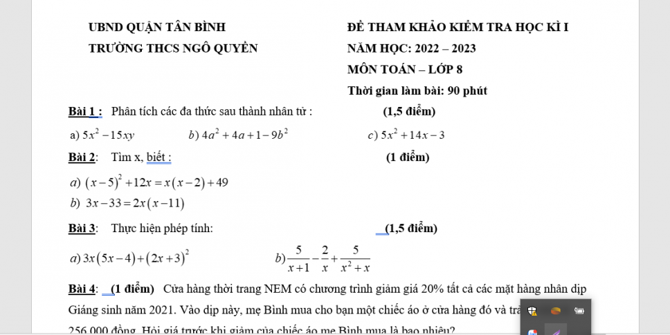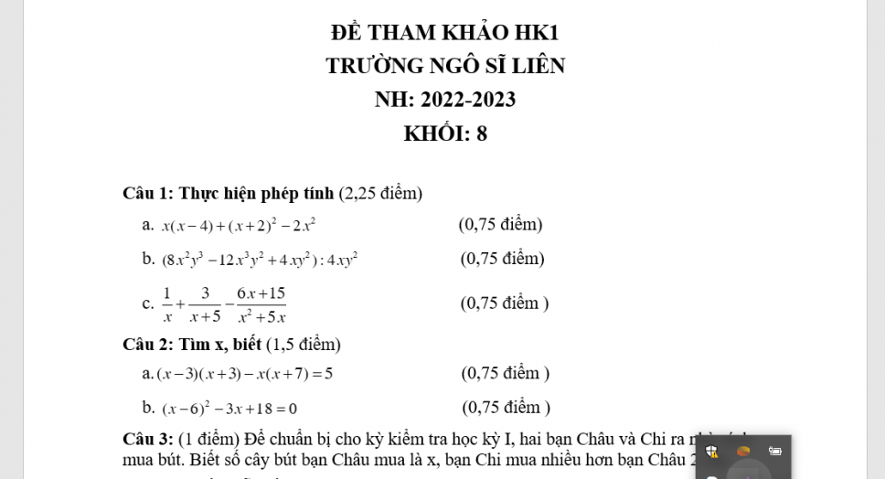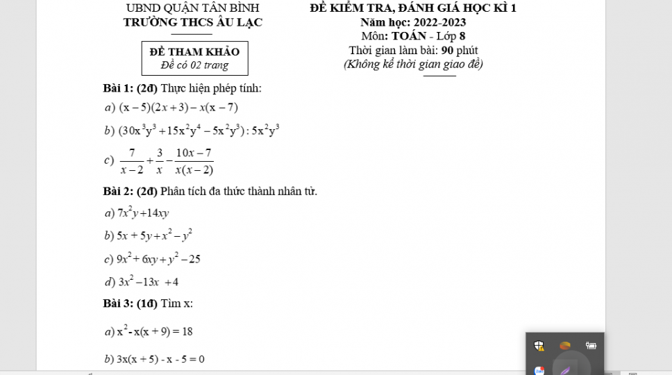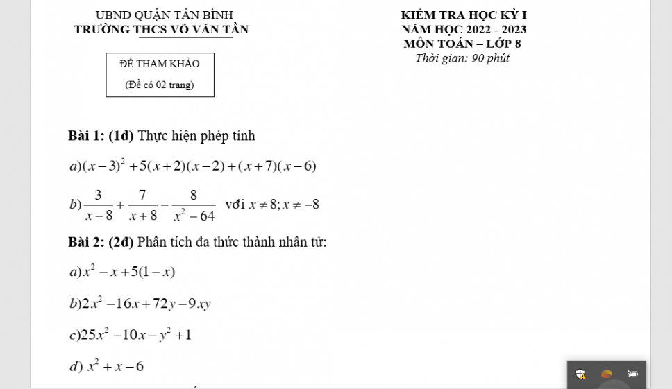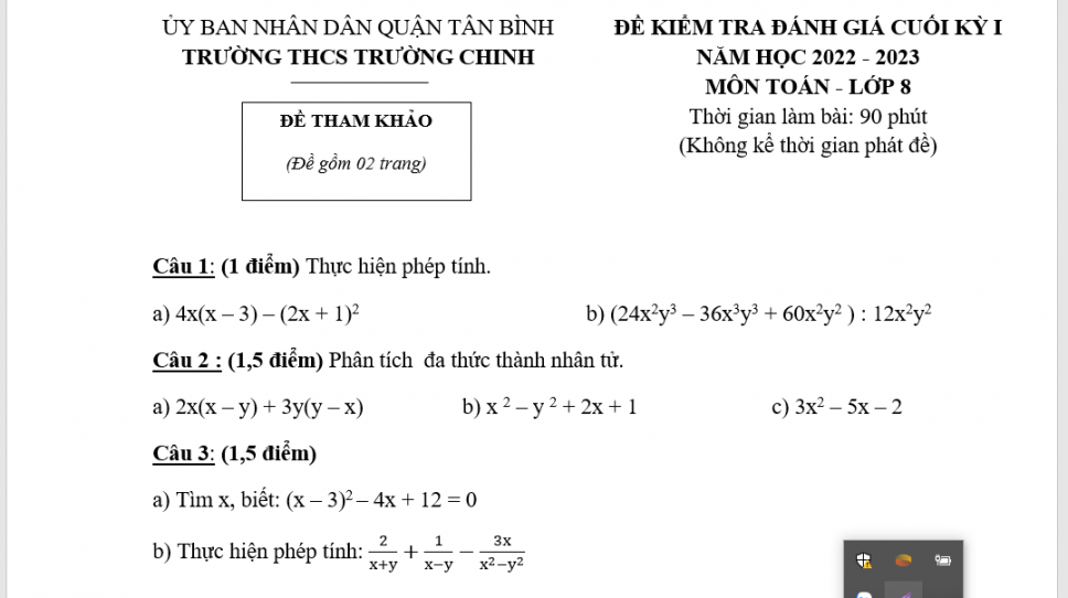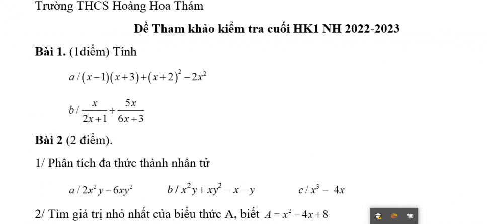 ĐỀ CƯƠNG ÔN TOÁN 8 THI HỌC KỲ 1 NĂM HỌC 22-23