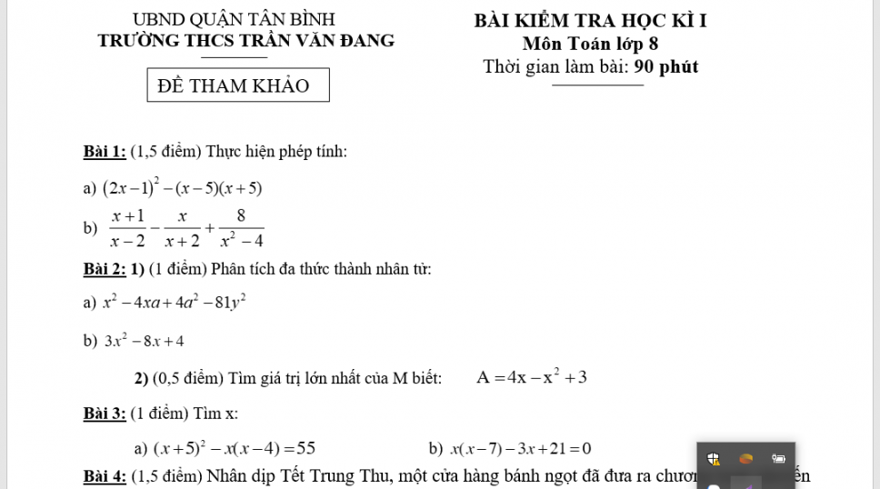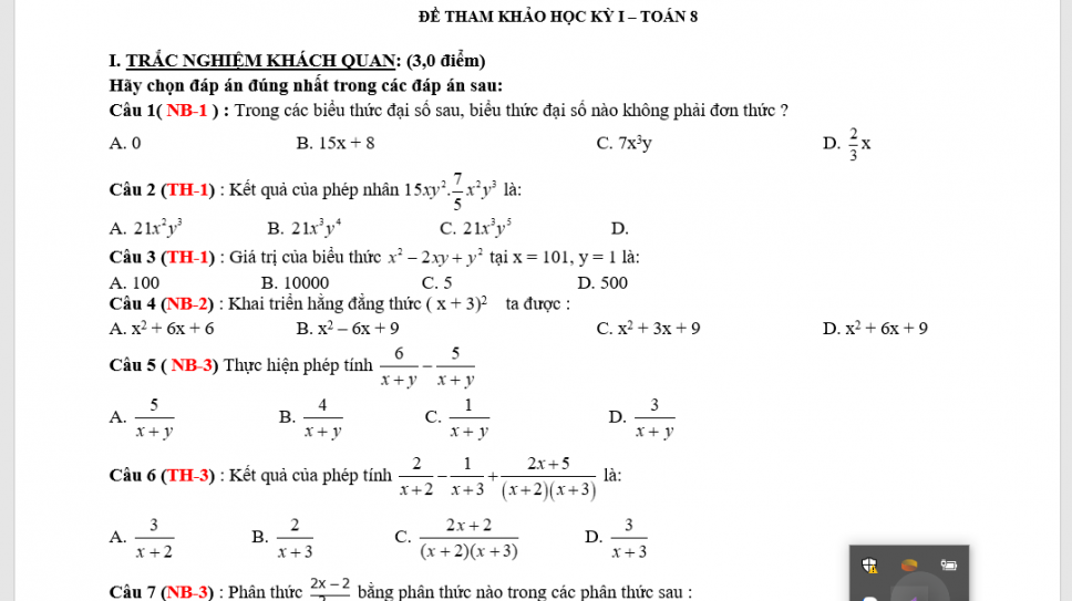 ĐỀ CƯƠNG ÔN THI HỌC KÌ I TOÁN 8 TỔNG HỢP BÀI TẬP TRẮC NGHIỆM VÀ TỰ LUẬN TOÁN 8 CÓ ĐÁP ÁN.