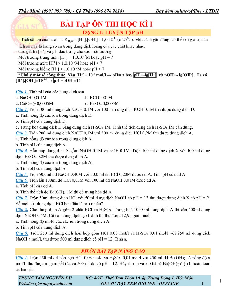 Hóa học 10 – Hướng dẫn ôn tập cuối kỳ I. 2022-2023